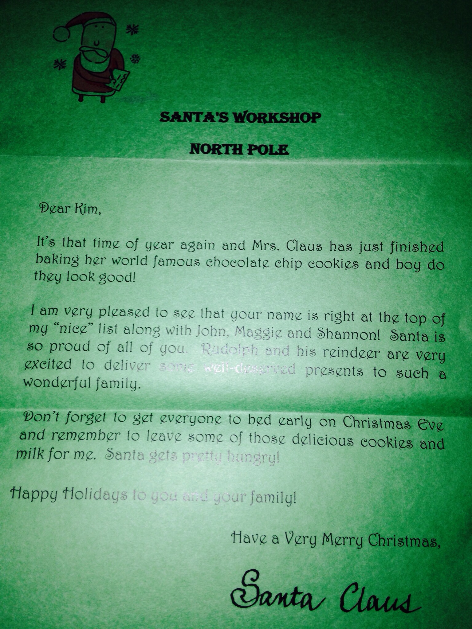 I’m 46 years old and this is my very first letter from Santa. I felt like the Winter Warlock when he received his first Christmas present. Or the Grinch, when his heart grew three sizes larger.