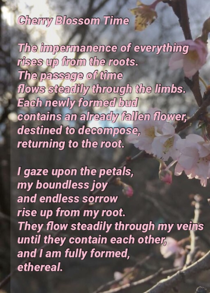 March 8, 2017April 2, 2019 1rhymescheme Cherry Blossom Time Share this: Click to share on X (Opens in new window) X Click to share on Facebook (Opens in new window) Facebook Like Loading...
