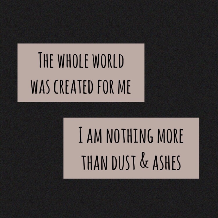Wherever I am, whomever I’m with, whatever I am going through, there is nothing to worry about. There is no need to stress or fear, no need for pride or sadness, because I am nothing more than dust and ash, and the whole entire universe is mine.