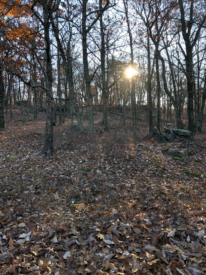 Gray-brown boulders and tree trunks