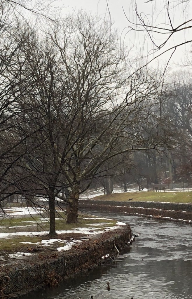 and the gray falls slowly, softly into white.