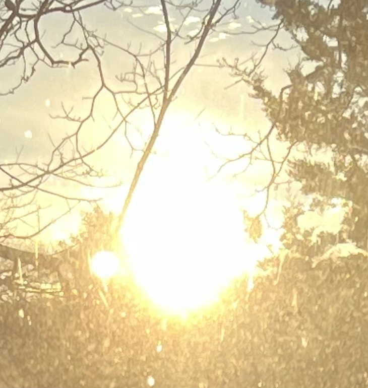 While I was tripping in my chair, the gray cloud cover had cleared away, and the sun had appeared. It had been shining through the sliding glass door, directly onto me.